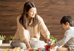 室内にいながら外で遊ぶ子供の笑顔が見える。