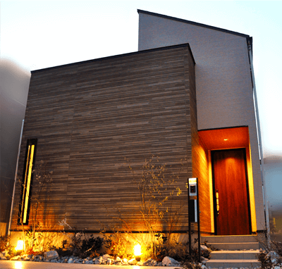 敷地内の「緑」はその度ごとに物件に合わせて慎重に選定します。その一つの例として自然の中で自生していた姿をそのまま残した植栽を、住まいの雰囲気に最も似合うものを厳選して使用した物件もあります。自由に伸びていく枝の曲線は、趣きと素朴な味わいがあり、自然の中の緑をより身近に感じさせてくれます。