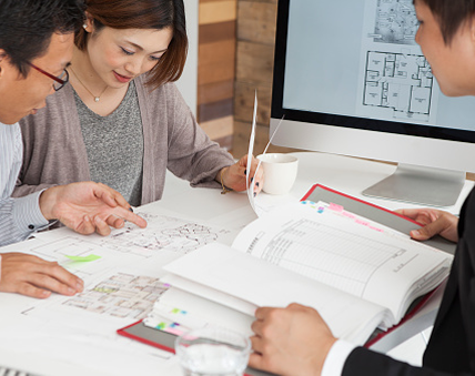 地盤の土の種類をより正確に判断し、的確な地盤評価を支援するための新しい試験法SDS®[スクリュードライバーサウンディング]試験で土質のデータを確認。正確な調査データをもとに、地形図等の多角的データと膨大な過去データによって客観的で精度の高い解析を行います。高度な調査・解析力に基づいて不同沈下しないという安心を提供する地盤の品質保証。万が一の事故の時も万全な対応をいたします。